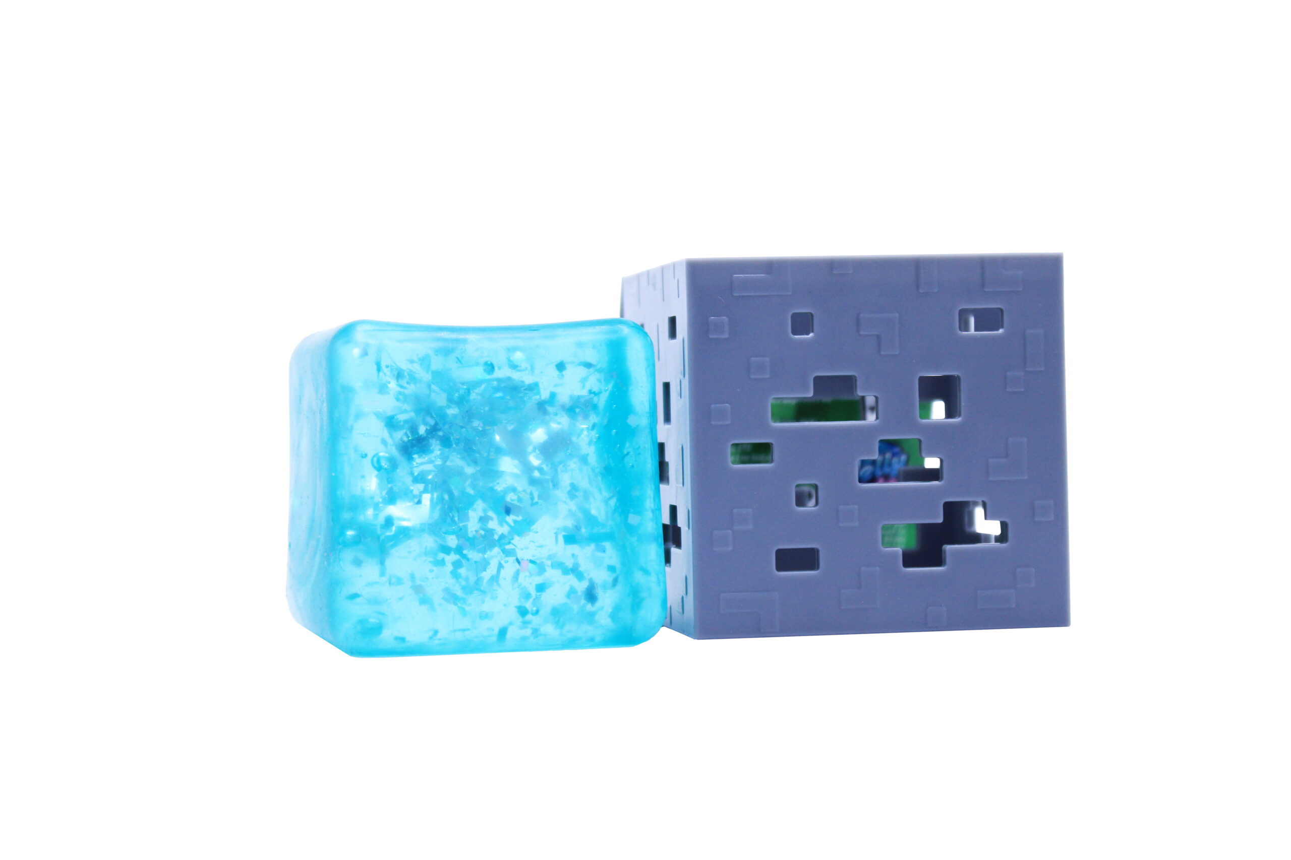 - 5 Unique Cubes to Collect – Hunt down all five vibrant, translucent cubes in red, yellow, blue, teal, and mystery gray! Each has the iconic Minecraft logo molded inside. Which one will you get?