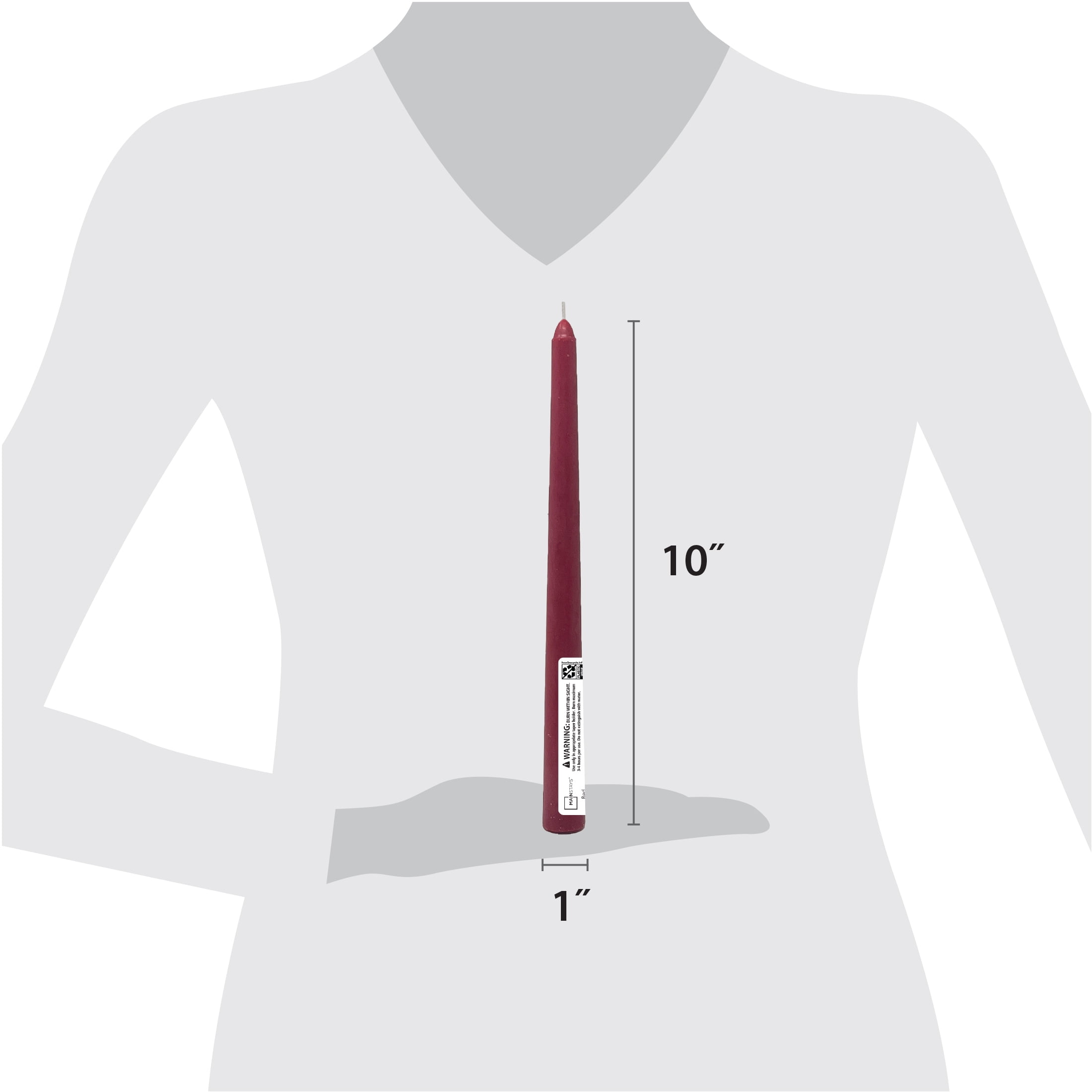 Introduce a warm, ambient glow into your home with the Mainstays Unscented Taper Candle. With a beautiful red color, this ten-inch unscented candle is perfect for everyday use or special occasions like weddings, parties, and other events. Made from high-quality wax, it ensures a smooth finish and a clean and consistent burn. Pair it with other unscented Mainstays Candles, including filled votives, votives, and pillars, to create a lovely candle display at home. Always use with an appropriate taper holder and follow safety guidelines. Illuminate your home with the timeless elegance of the Mainstays Taper Candle.