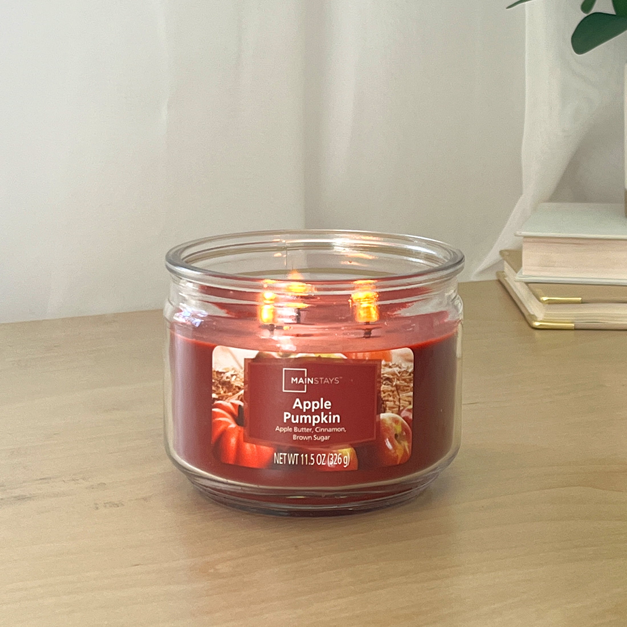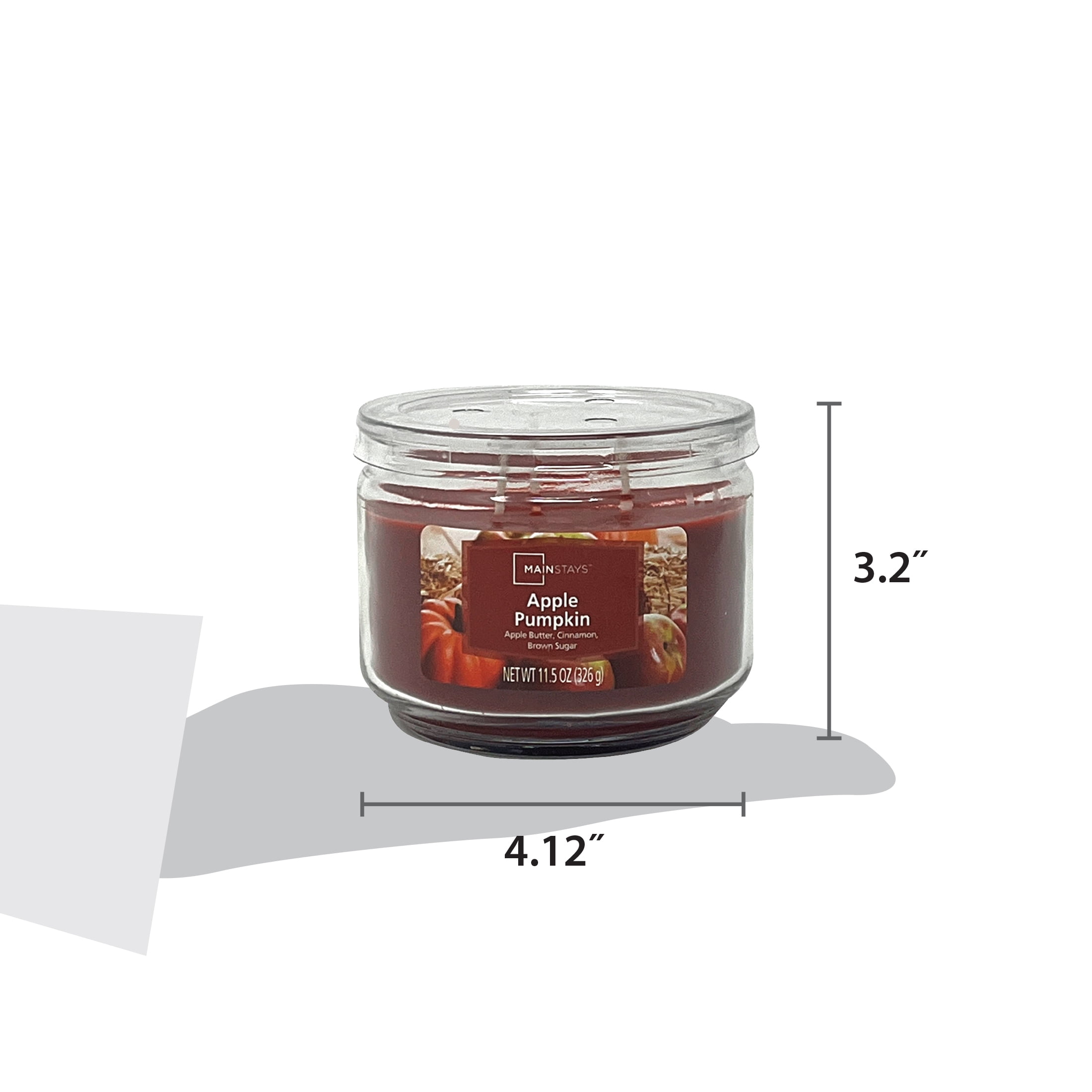 Introduce a soothing aroma into your home with the Mainstays Apple Pumpkin Scented 3-Wick Glass Jar Candle. Infused with delightful fragrance notes of apple butter, cinnamon, and brown sugar, this scented candle creates a comforting atmosphere that’s perfect for any setting. Designed for a clean and even burn, the three-wick glass candle jar illuminates your space while filling it with an inviting fragrance. Whether you’re entertaining guests or enjoying a relaxing evening, the Mainstays Apple Pumpkin Candle is perfect for brightening your space with a beautiful and enticing seasonal aroma. Trim the candle wick periodically to promote even burning. Explore more scents from the Mainstays 3 wick candles collection to find your perfect match.