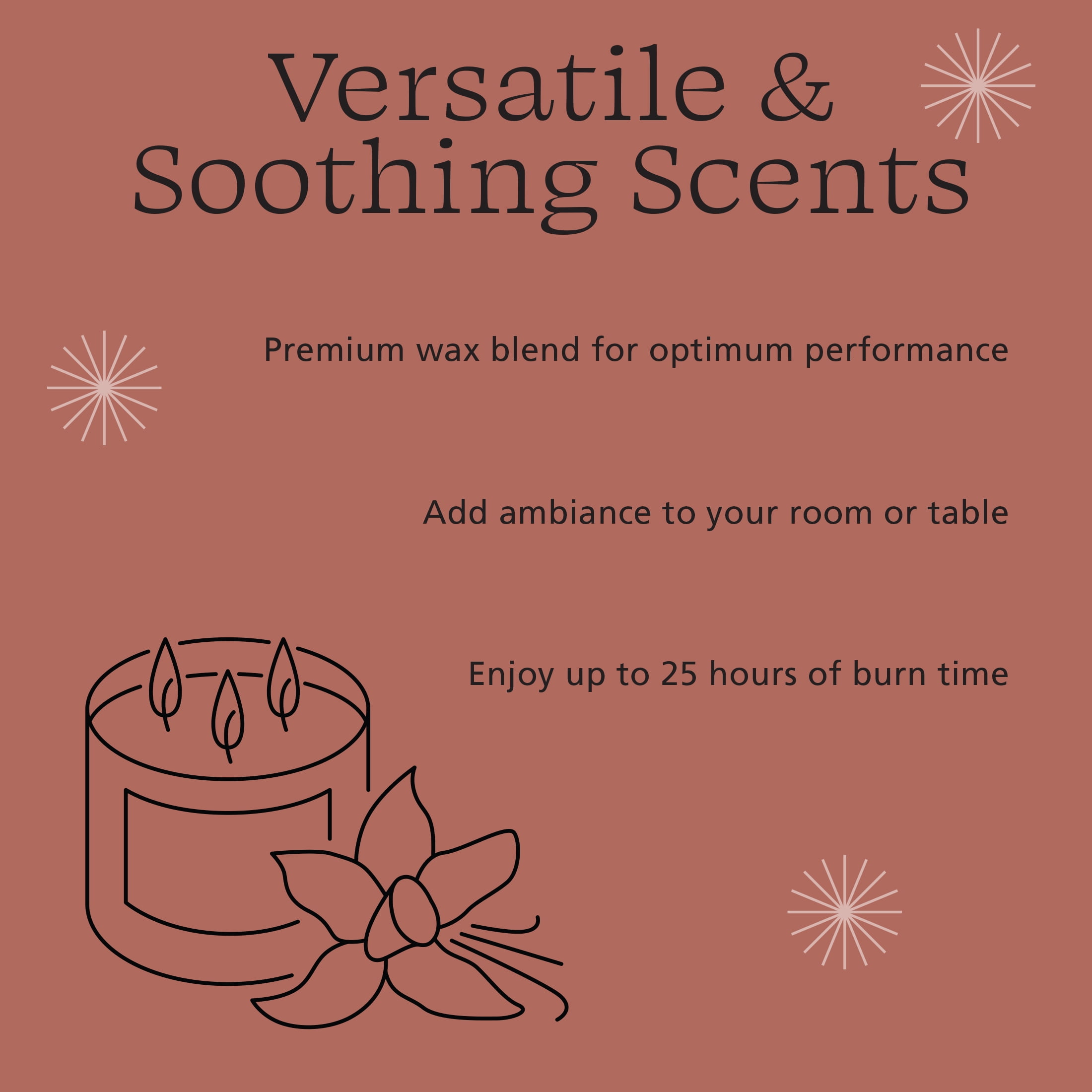 Extended Burn: Enjoy up to 25 hours of continuous fragrance and light, providing long-lasting enjoyment.