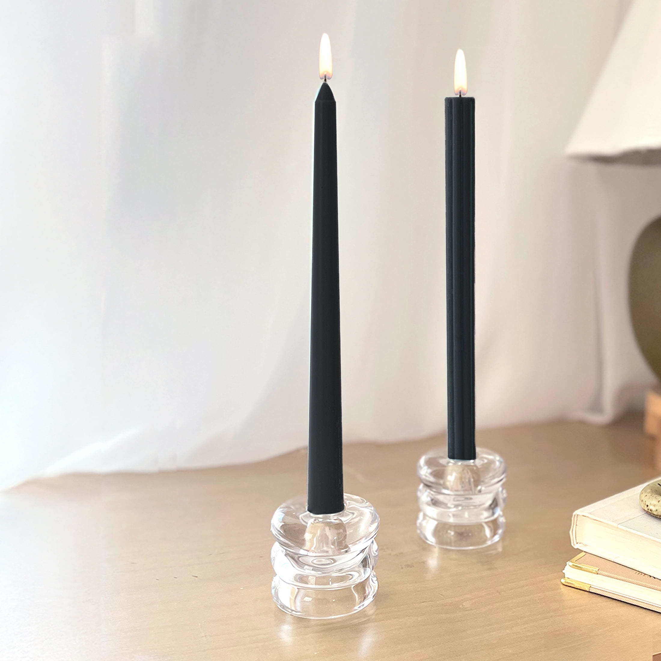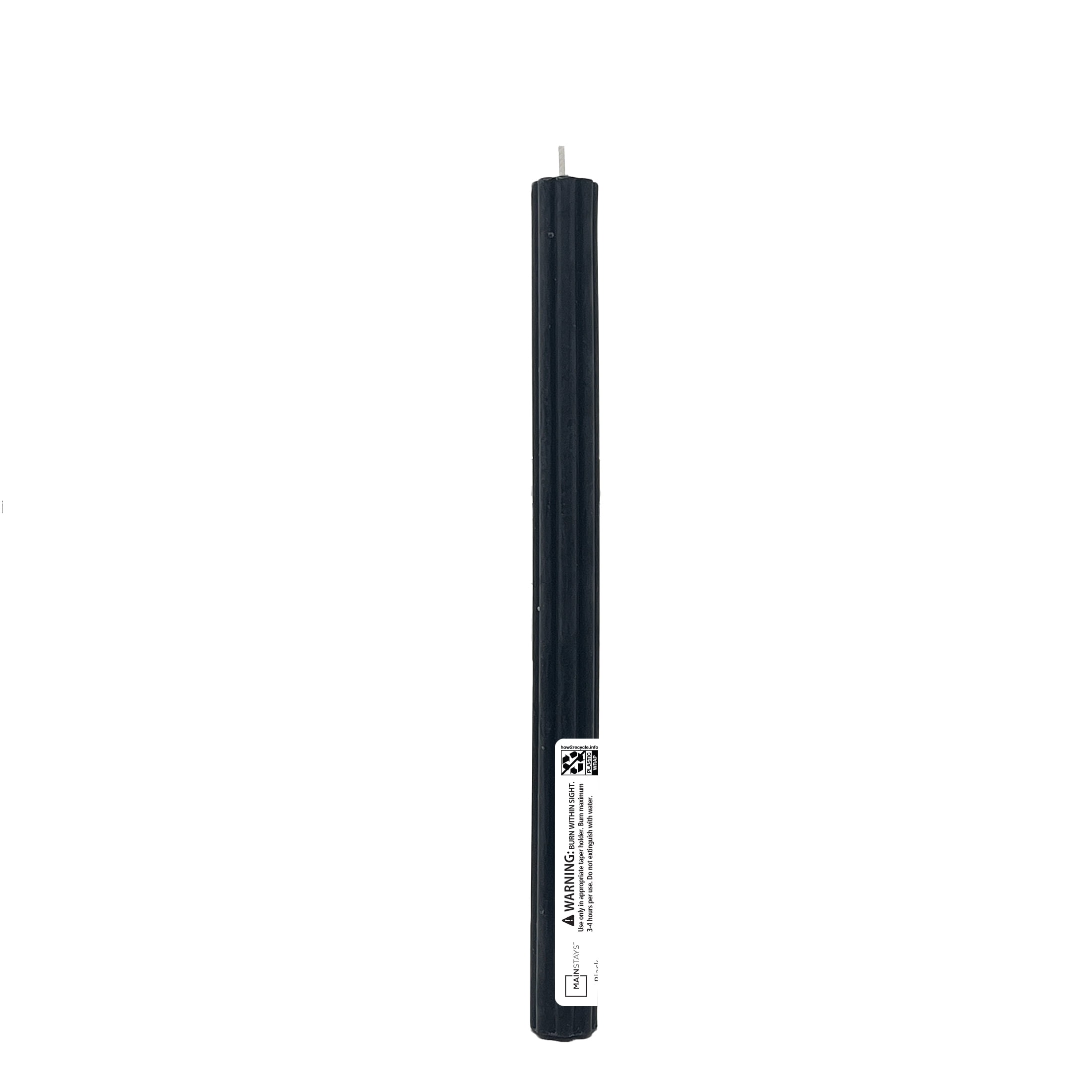 Elegant Design: Unscented ribbed black taper candle with a classic 10-inch length and smooth finish.