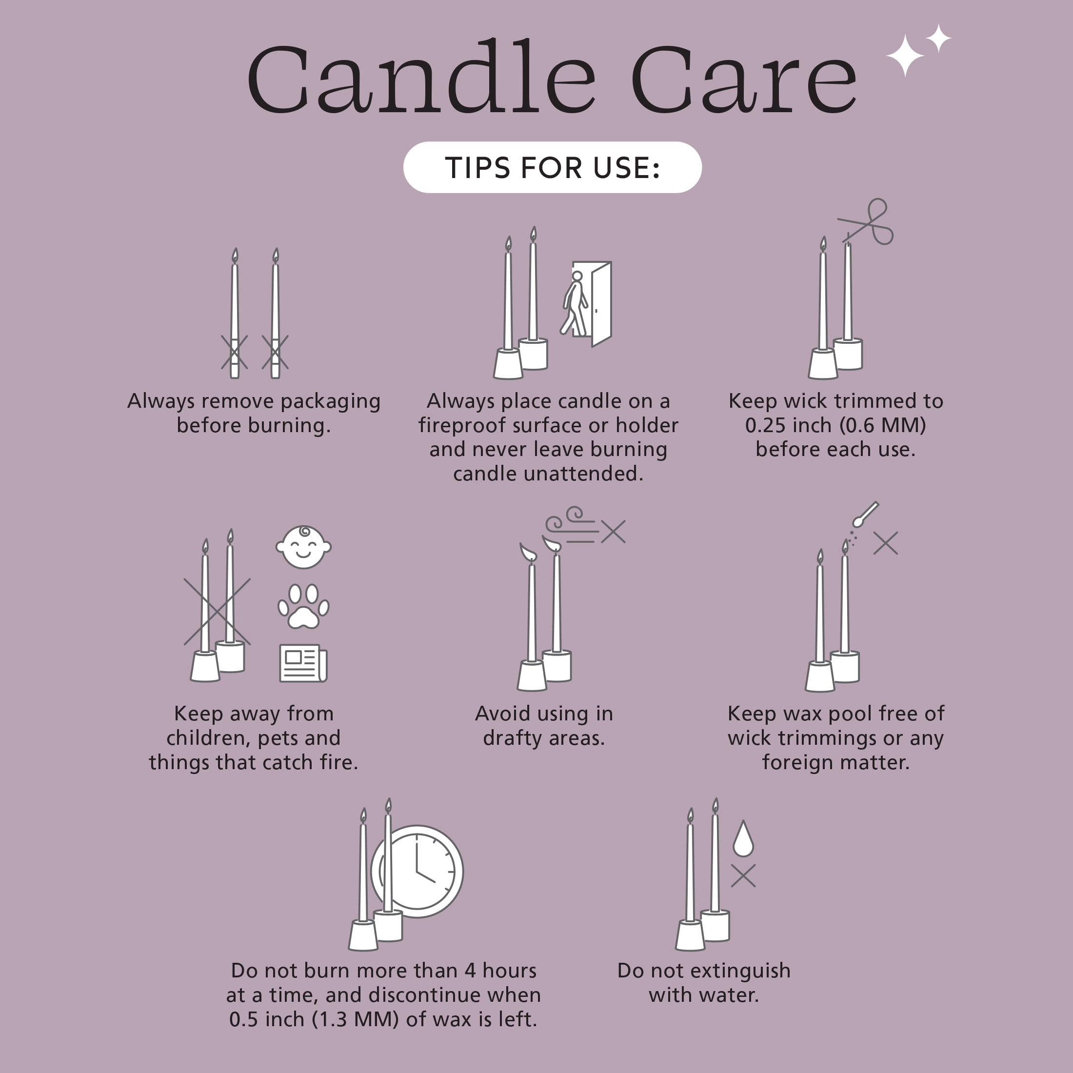 Holder Required: Always burn with an appropriate taper holder (candle holder not included).
