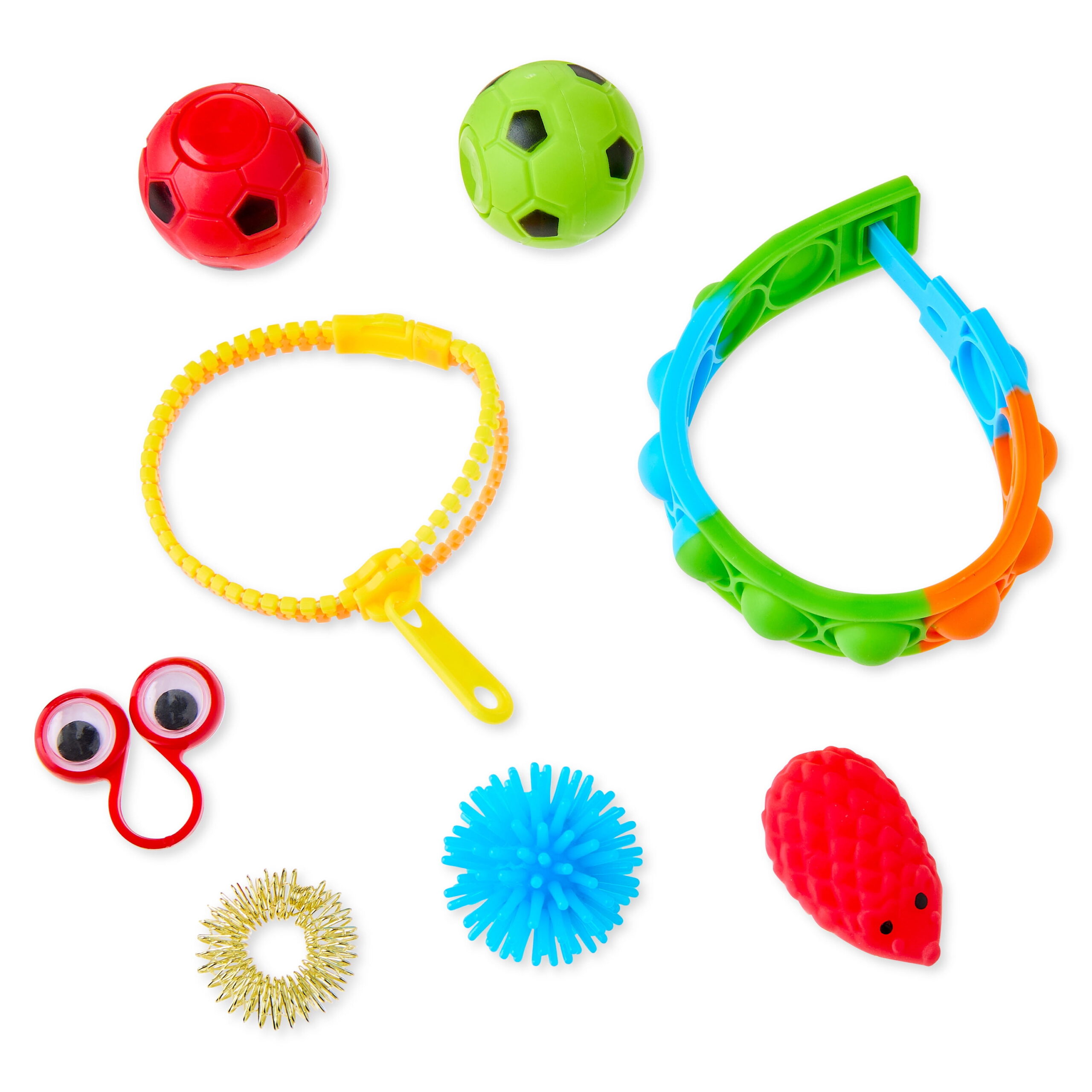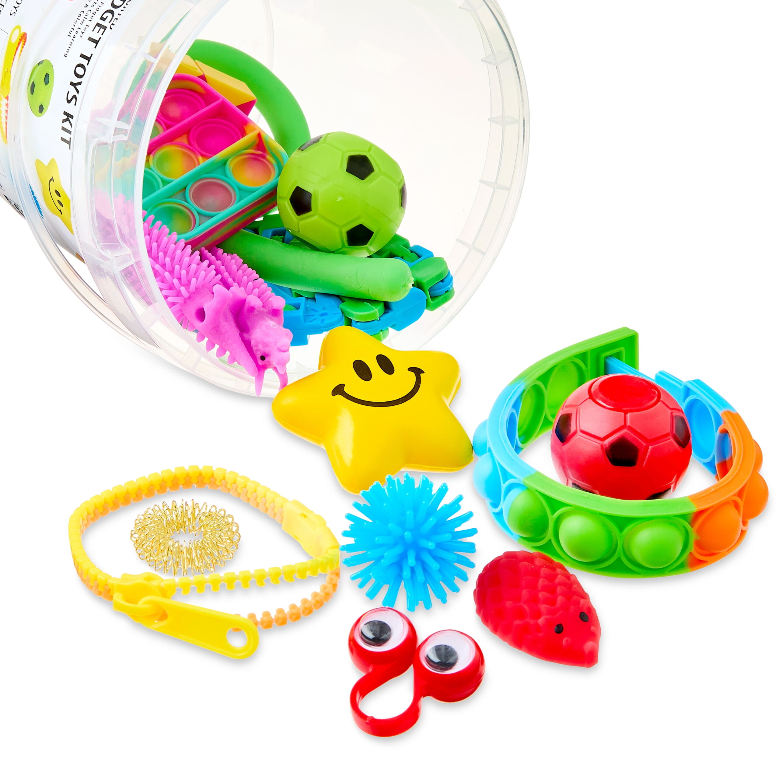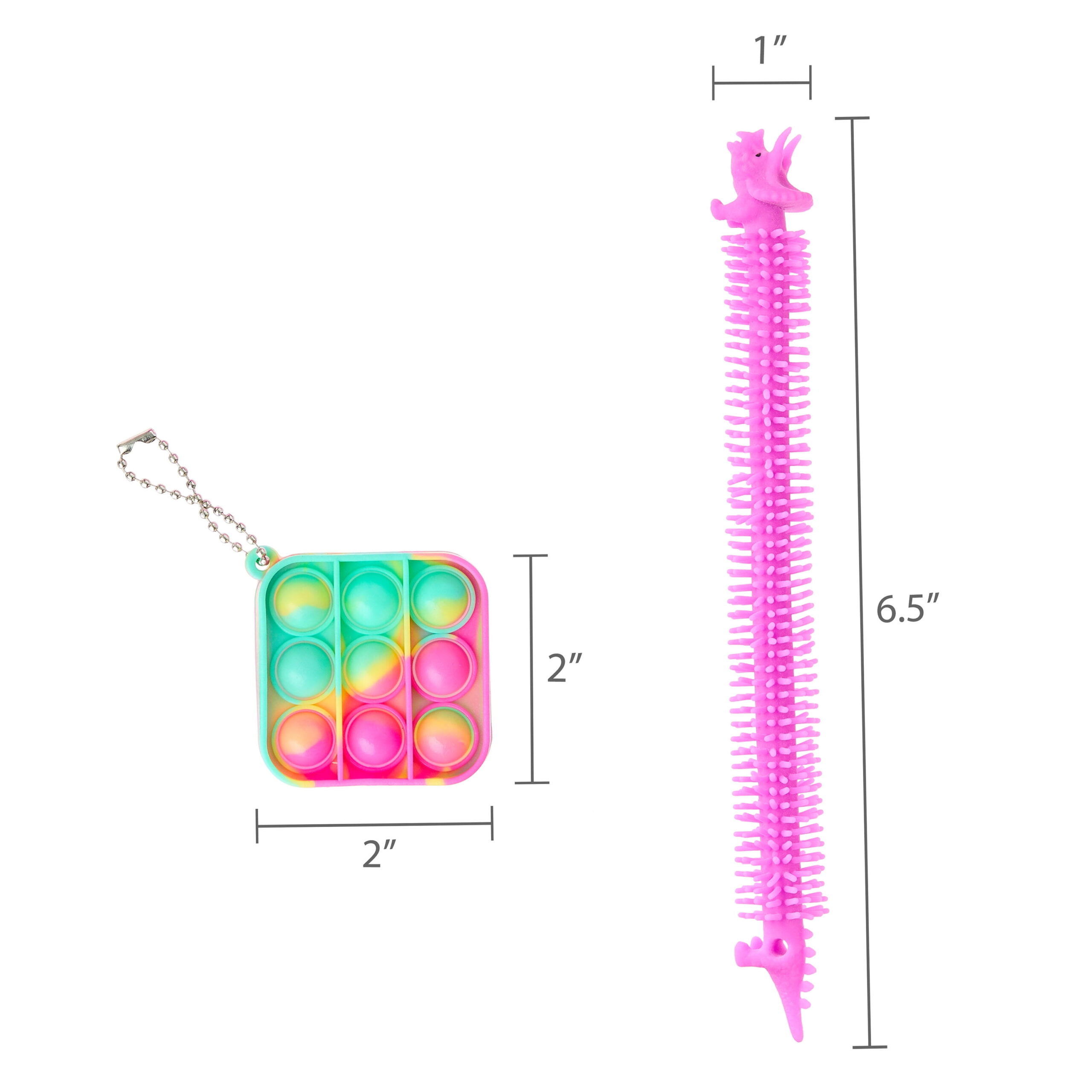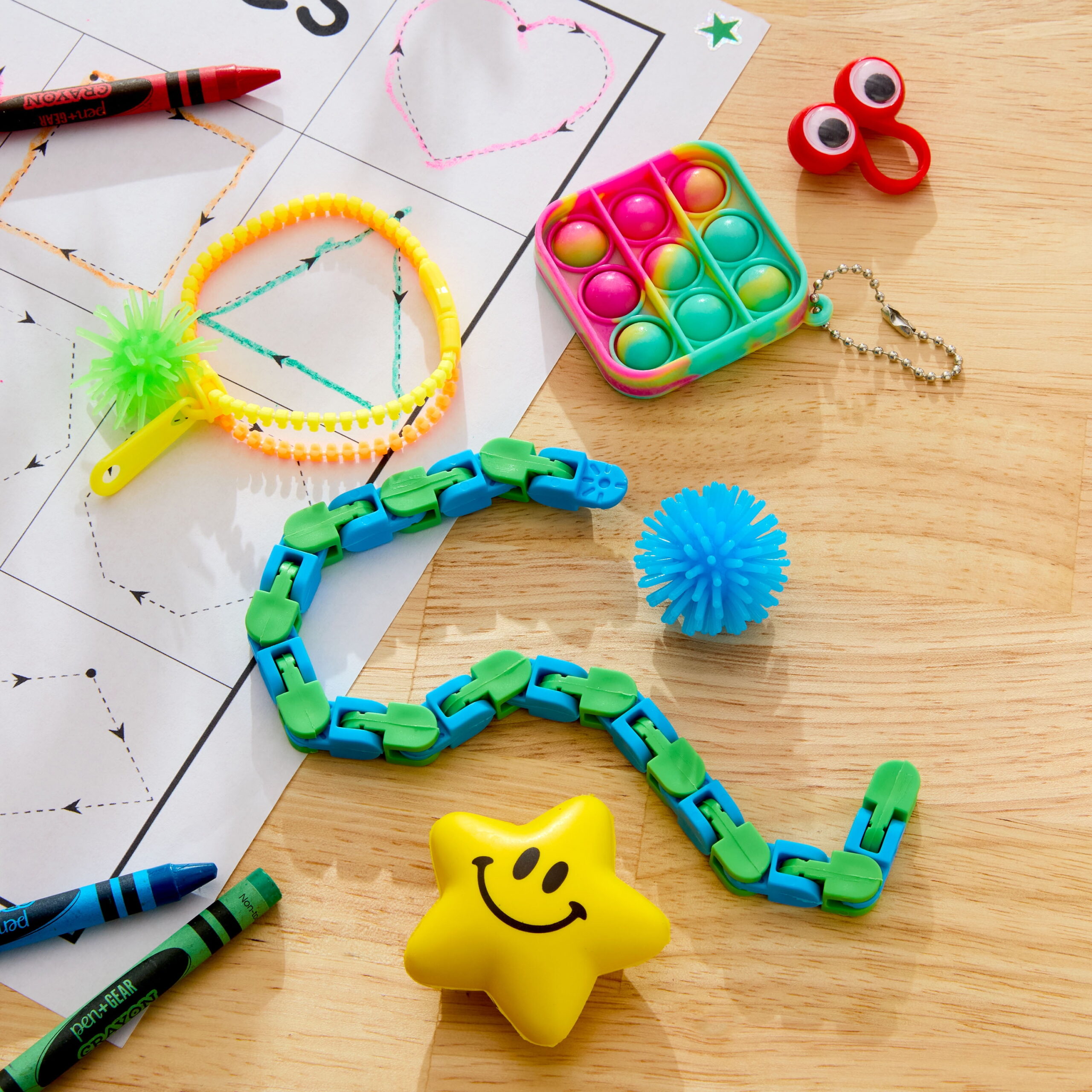 - Assorted Fidgets: Includes an assortment of different fidget and sensory toys, such as squishies, poppers, and a wiggly sensory slug.