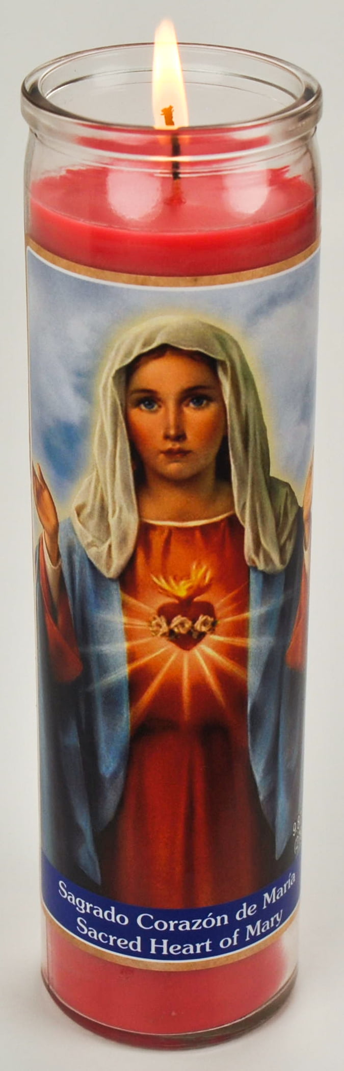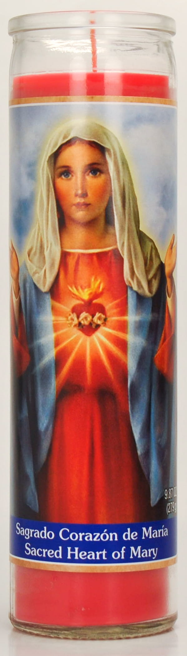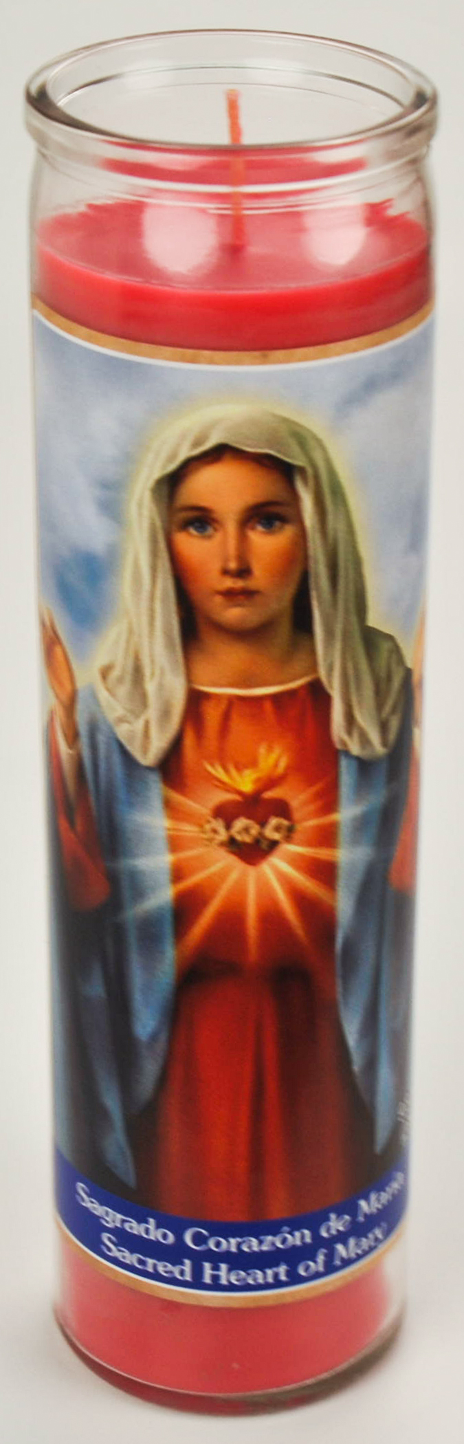 Prayer Candle Sacred Heart of Mary Red Wax, 8 Inch