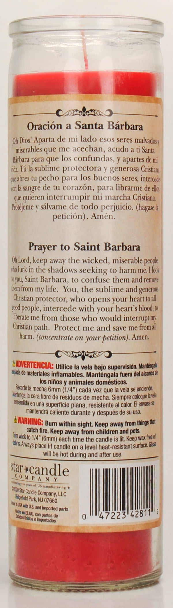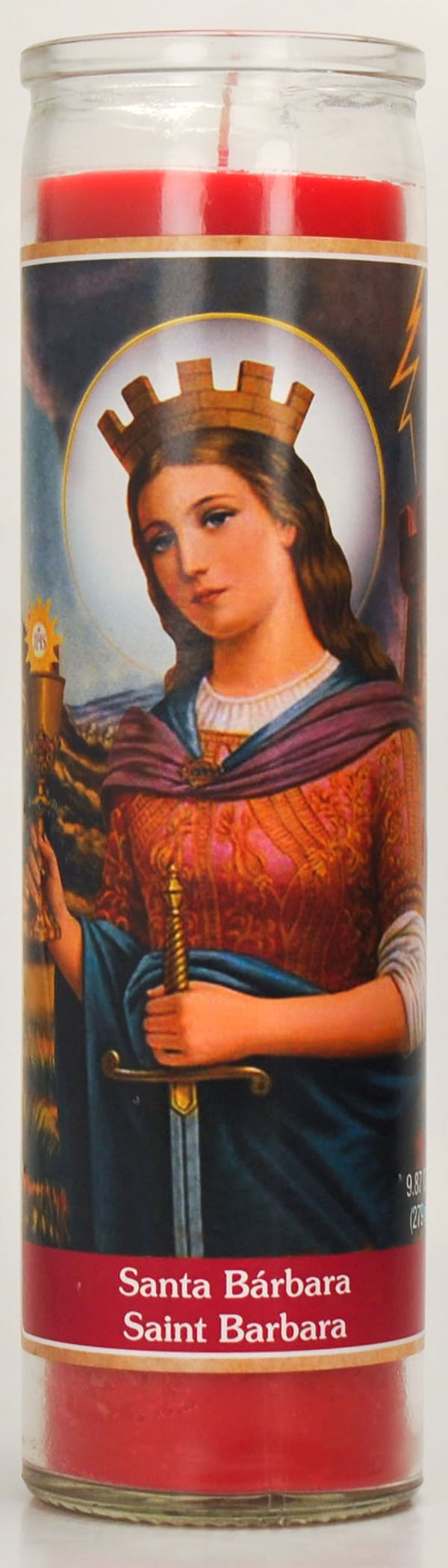Prayer Candle St Barbara Red Wax, 8 Inch