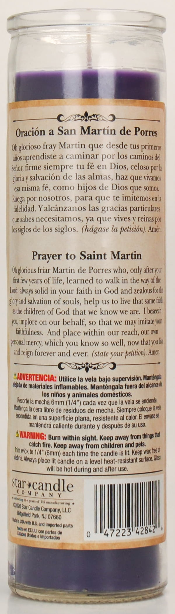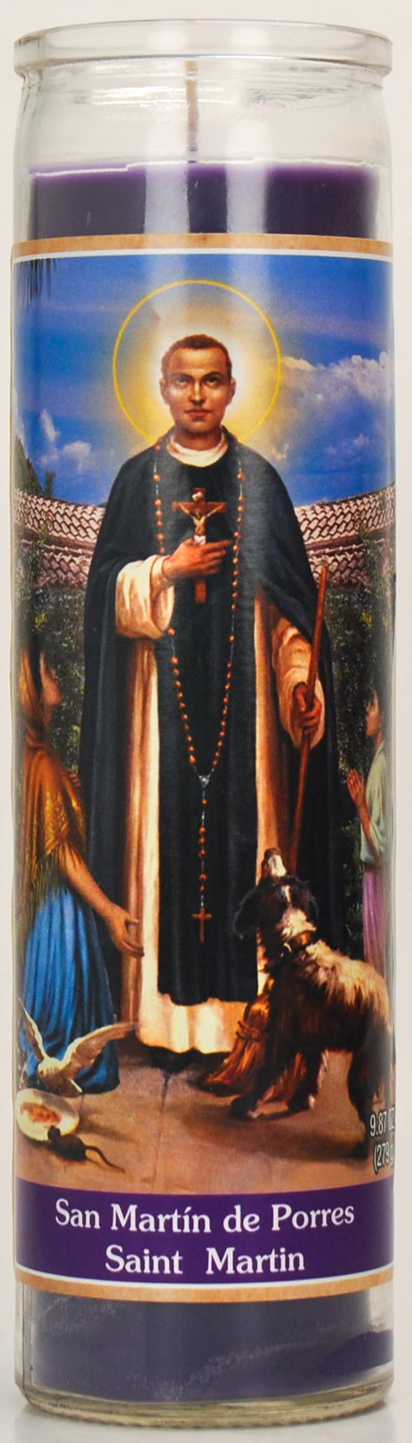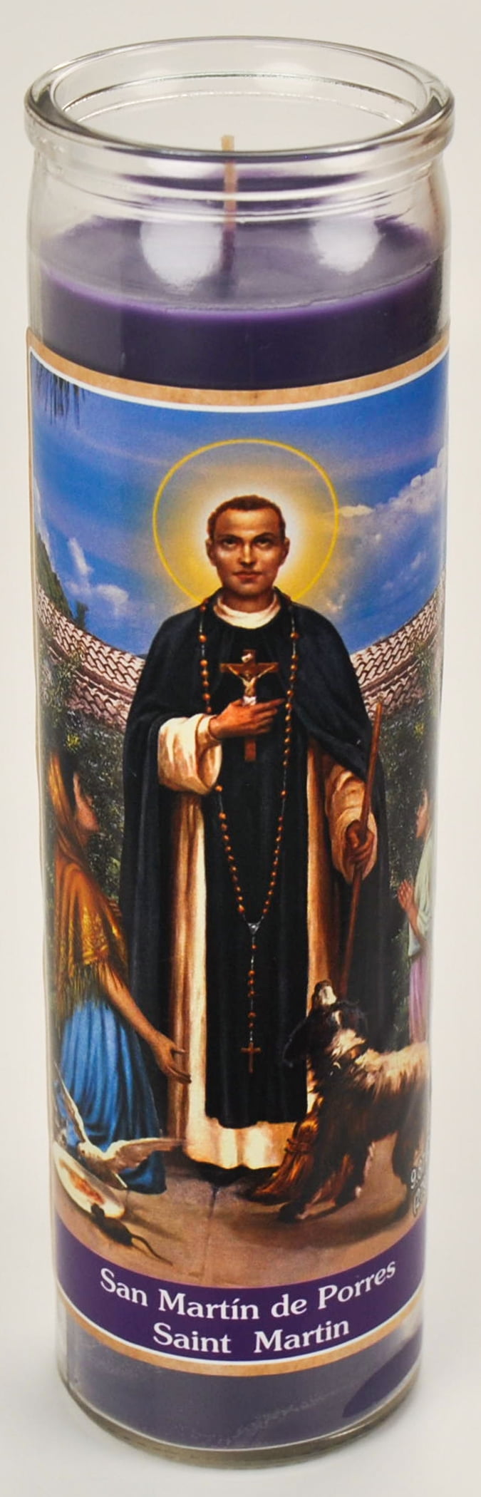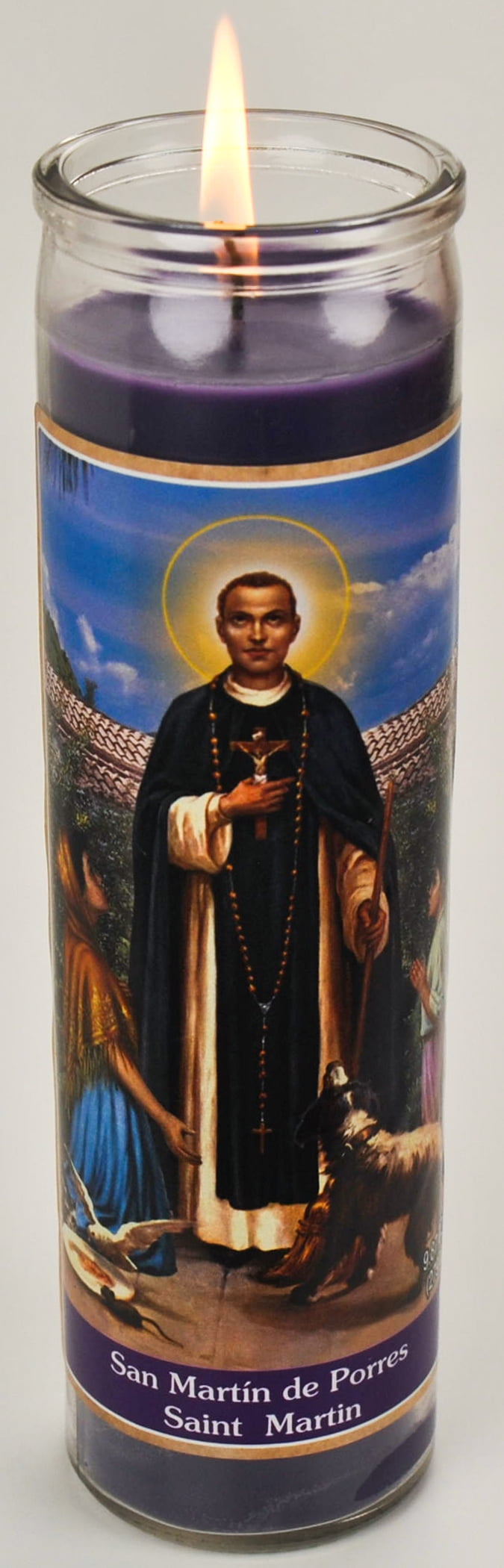 Prayer Candle St Martin De Porres Purple Wax, 8 Inch