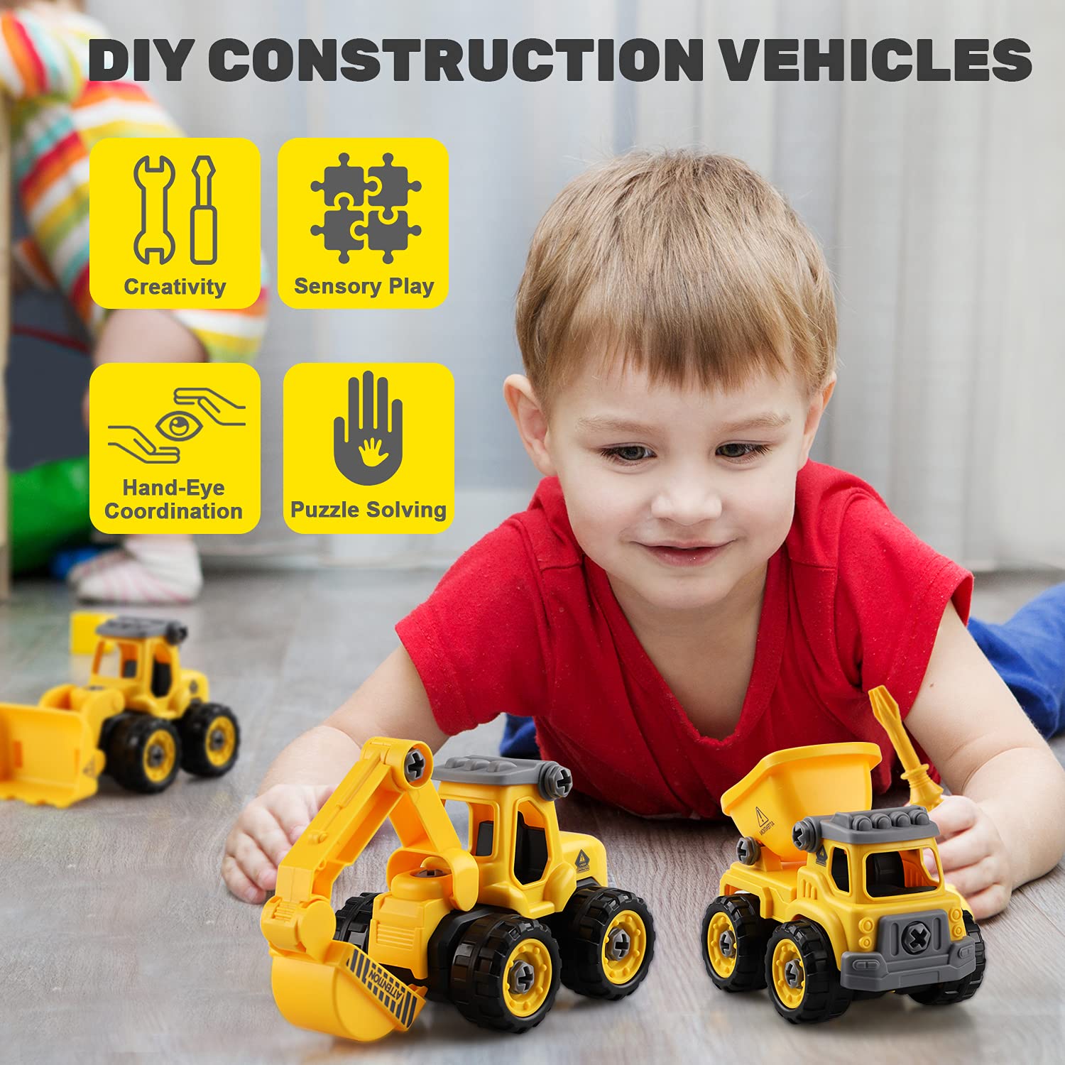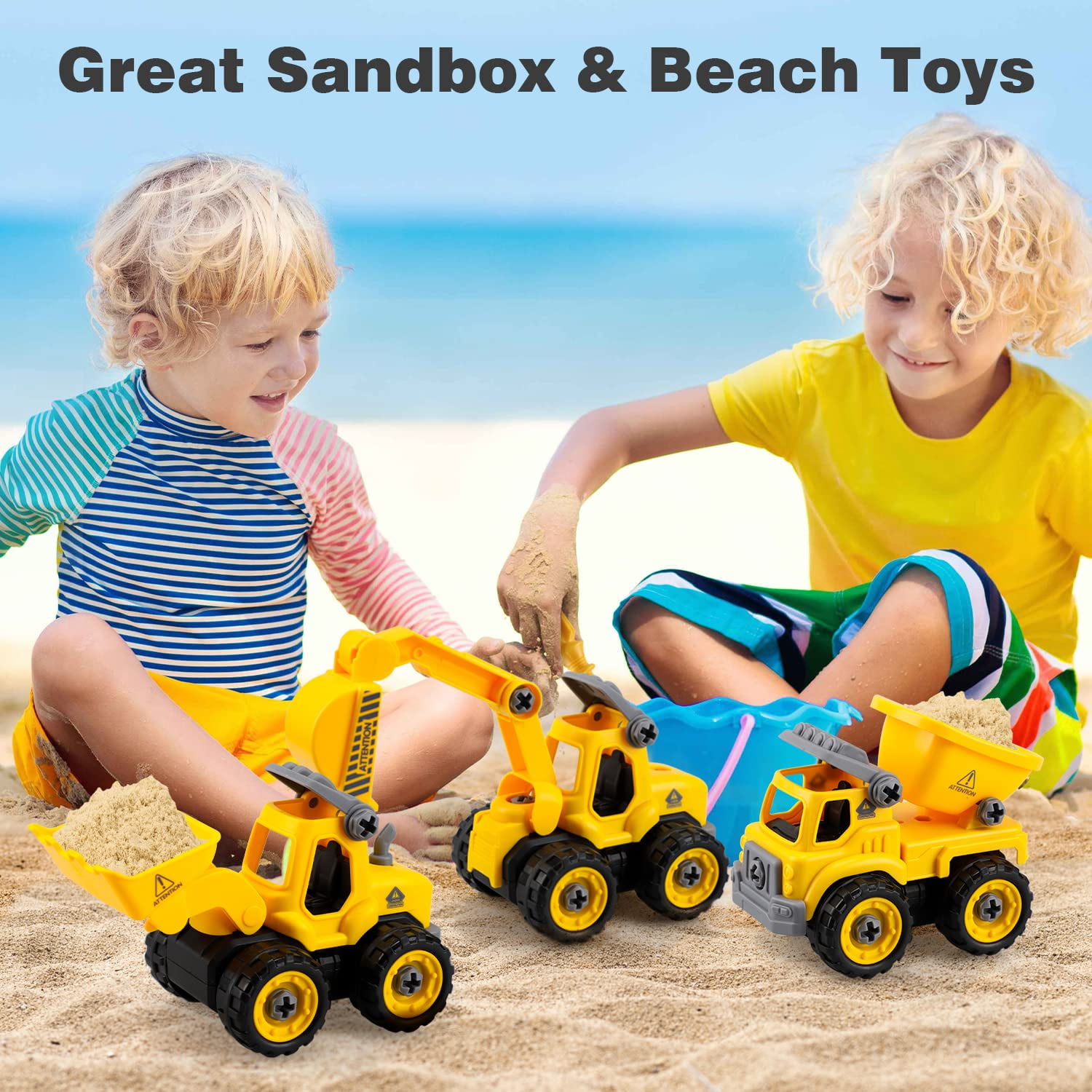 TOY Life Constructions Toys Vehicles Trucks Take Apart Toys Sandbox Toys Trucks Set Excavators Building Car Toys with Drills – Best Gifts Truck Toys for Boys Kids Toddlers 3 4 5 6 7 8 Years Old