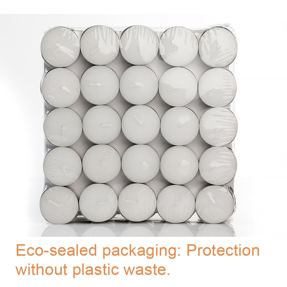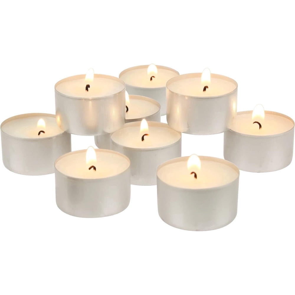 Safe Material: The tea light candles are crafted from paraffin wax, ensuring a smokeless and user-friendly experience with a burn time of up to 8 hours or more. Enjoy a clean, soot-free, and flickering flame.
