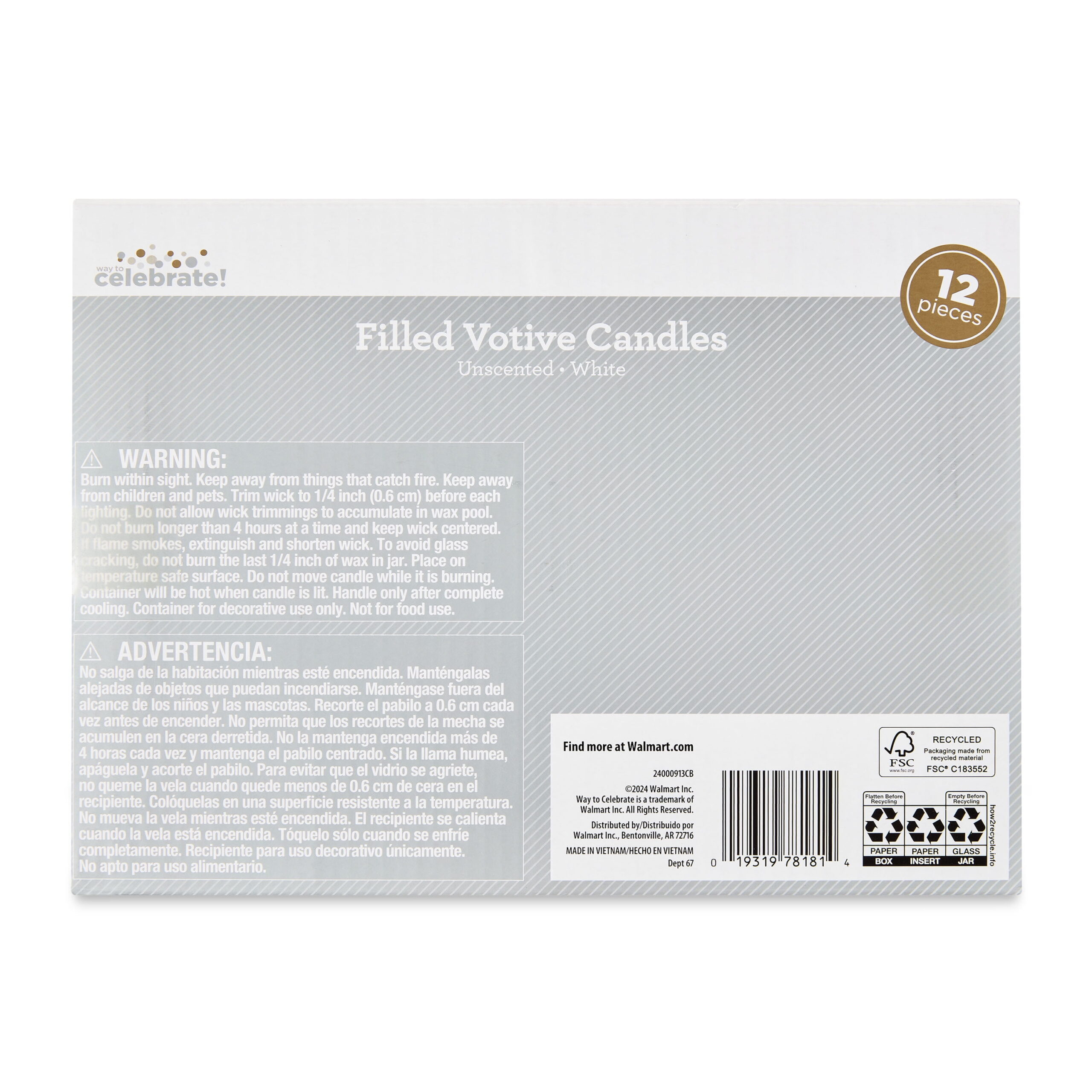 - Inviting Glow: Enhance your space with the inviting and serene glow of Way To Celebrate Filled Votive Candles.